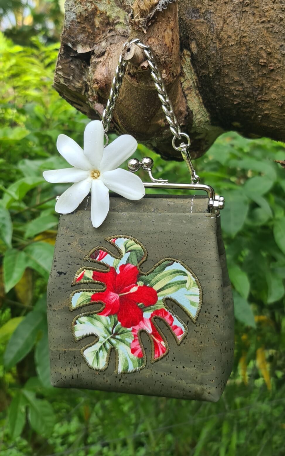 Liège vert armé + tissu polynésien